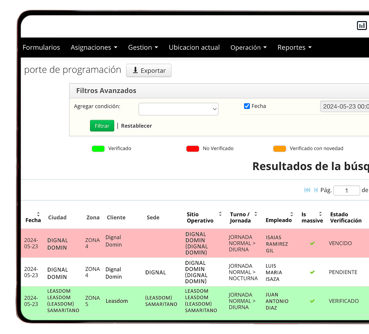 inData consolidará automáticamente cualquier tipo de novedad o desviación en su programación, permitiéndole gestionar cada una según corresponda.
